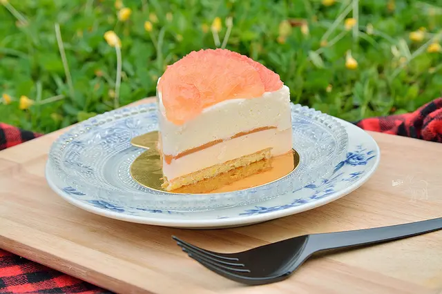 當日一共買了四款甜點,紅寶石是以葡萄柚、橙所搭配的幕斯蛋糕,滋味酸甜爽口。