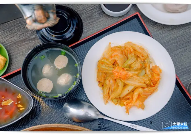 酸筍鴨肉丸湯搭配韓式泡菜,飯後還有黑糖愛玉,整個相當飽足!