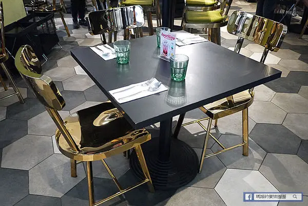 翡冷翠的環境走質感高雅風,黑色的桌子搭配金色帶光澤質感的椅子,整體的風格很高雅,舒適的用餐空間更帶給人們一種高品質的感受。