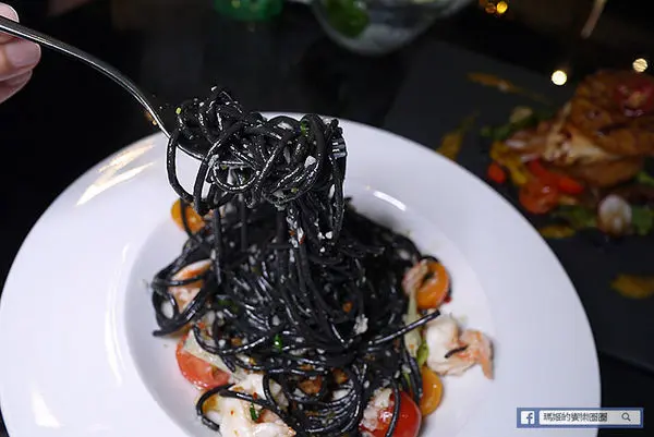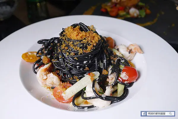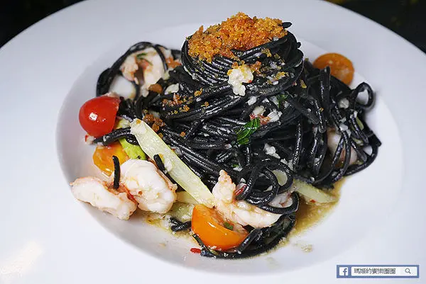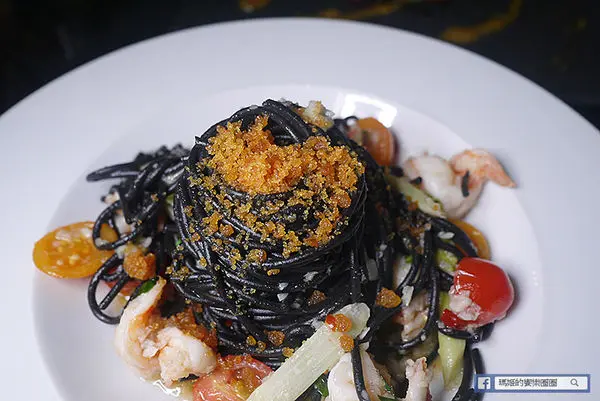 墨魚麵條雖然看起來黑嚕嚕,但吃起來牙齒不會變黑哦!而且麵條口感十分有嚼勁,這個口感讓人喜歡!