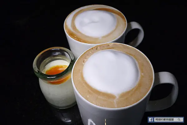套餐飲料的部份提供了咖啡或紅茶,我們都補差價選了熱拿鐵和熱卡布奇諾,來搭配甜點一起享用。