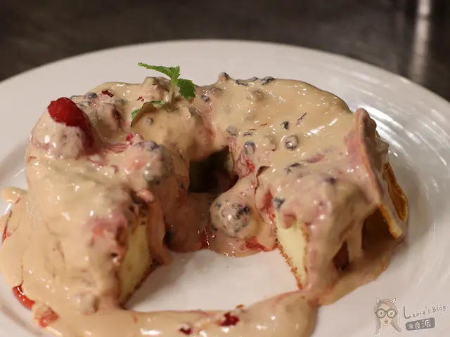 蛋糕有經過回烤還有些溫熱,類似戚風或是海綿的質地,鬆軟綿密,在嘴裡可以感覺到蛋糕本身的濕潤度很夠,上方的莓果鮮奶油奶香味濃郁,有著莓果的酸甜,吃起來不會膩口,且有點冰熱交加的口感,蠻特殊的。這個下午茶套餐珍的太優惠了,很適合姊妹一起來享用。
