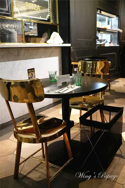 佐以特別設計的閃亮金色椅子呈現奢華時尚風格,
