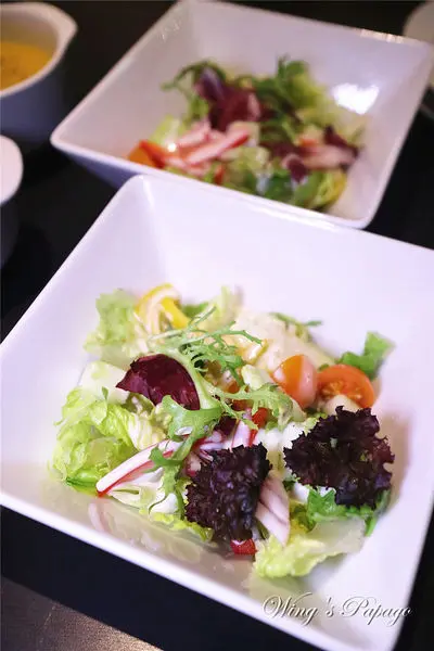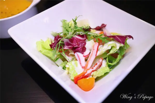 沙拉醬是柳橙蘋果優格,多種新鮮蔬菜搭配酸甜水果優格,嚐來清爽香甜。