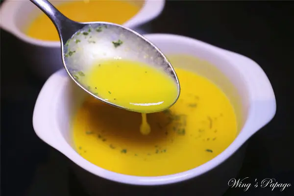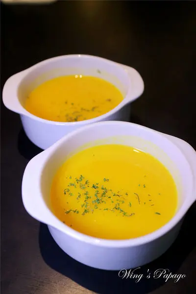 今日例湯是南瓜濃湯,口感濃稠綿密,充滿南瓜自然香甜味,