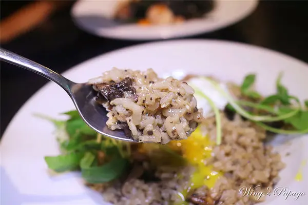 米飯是道地義大利米會帶點米芯的口感,吸收黑白松露醬汁精華及多種蕈菇香氣,