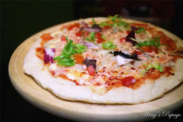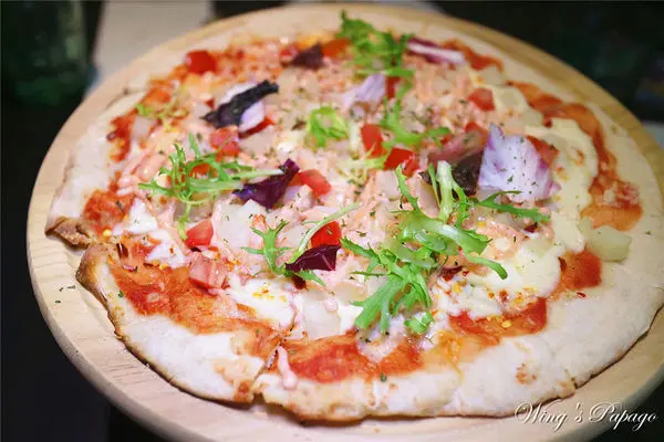 以自家手作天然酵母發酵餅皮製作的披薩,我們選了明太子洋芋蟹肉口味,