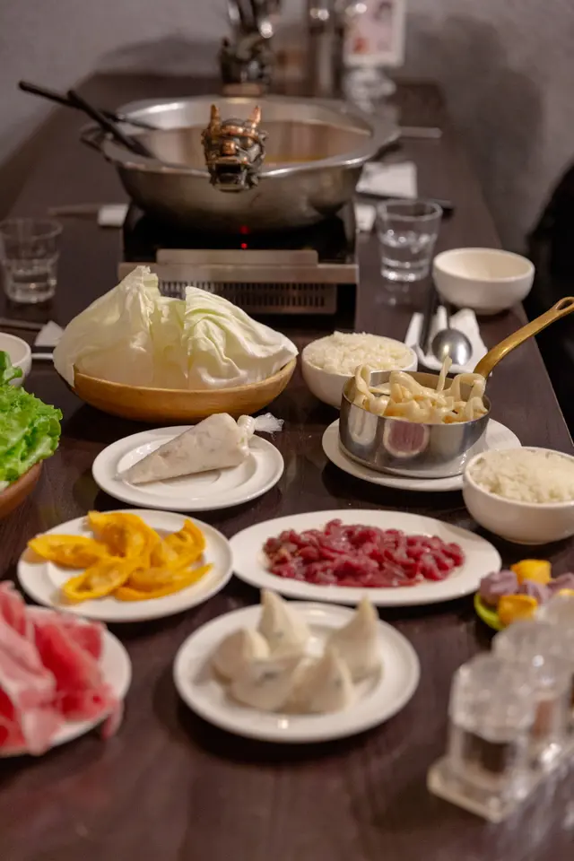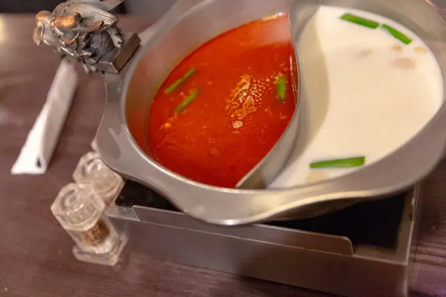 湯頭: 四川麻辣鍋/牛奶鍋/大骨清鍋/酸菜白肉鍋/壽喜燒/沙茶鍋 (六種湯頭任選兩種)