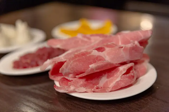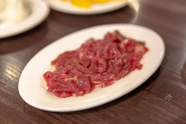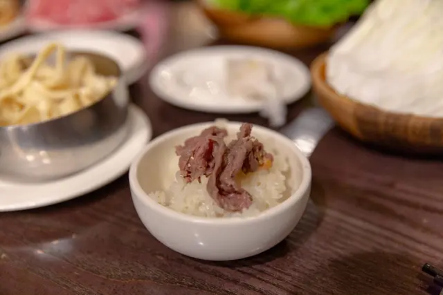 雙人鍋的主菜可以選三樣,溫體牛、梅花豬和蝦仁漿