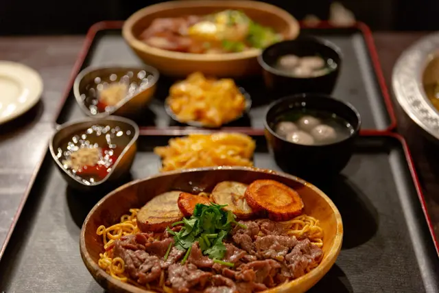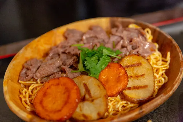 嫩牛四川燃麵御膳使用的就是剛剛火鍋吃到的溫體牛,口感很嫩之外,肉汁十足,同時作為烤時蔬的紅蘿蔔和馬鈴薯超好吃,雙手雙腳舉高說好吃