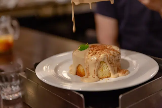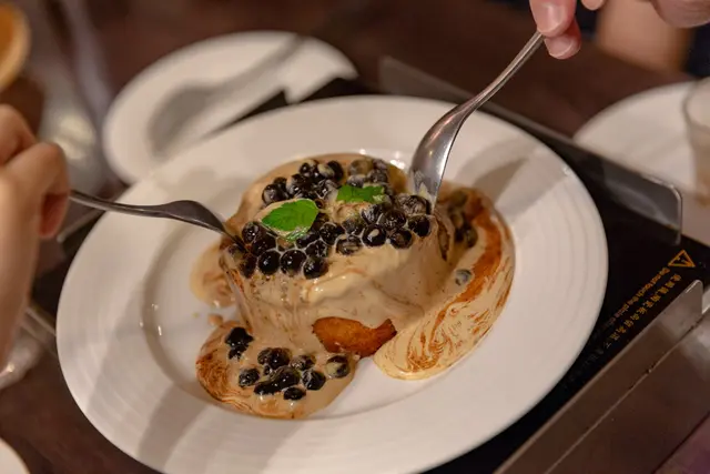 如同剛剛飲料的驚嘆,瓦法奇朵的蛋糕做的很吃也不算稀奇,只是這樣淋下黑糖珍珠,奶茶奶油融化的畫面也太美了,只要點火鍋和川菜就可以免費獲得喔