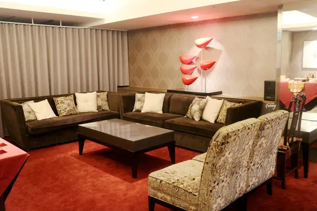 一旁的接待沙發,令人覺得相當舒適!若有需求,這個包廂可以配置到兩張大桌子,即可容納到40人。