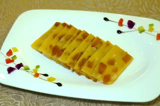 將鹹香的烏魚子夾入起司蛋中,類似三色蛋的口感,但滋味卻更濃香。