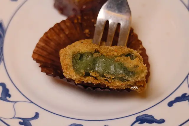 原來是將海苔粉拌入麻糬之中,然後油炸後再裹上花生粉。這一入口,甜而不膩,海苔粉的香氣讓麻糬的味道更為獨特。有著油炸過的酥脆感卻一點也不顯油。保留了麻糬該有的Q勁,卻咬來一點也不費力,而且充滿了香氣,是一道每個人都稱好的甜點。