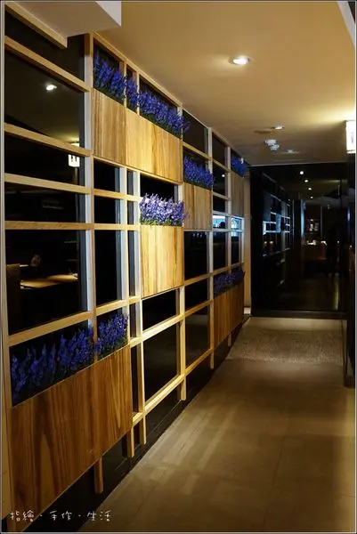 走道旁牆面巧妙帶入薰衣草的佈置好特別