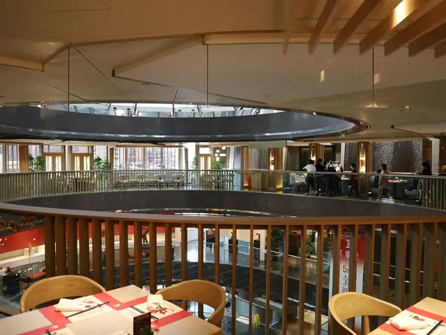 香格里拉台北遠東國際大飯店中庭挑高加上週邊的落地窗,因此每層樓都能感受到明亮的光線。雖然遠東Café此區離餐檯較遠一些,但更顯悠閒氛圍,希望下次可以指定坐在這個區域。