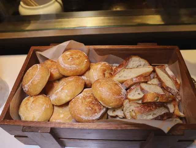 一旁搭配湯品的麵包,看起來好可口。