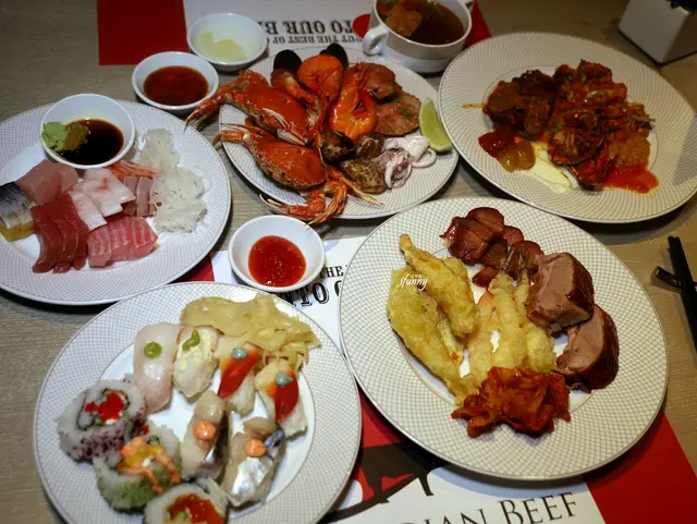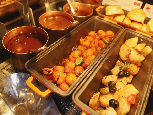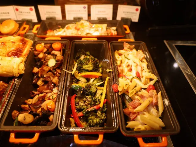 走了一輪,等回到座位上時,同桌友人們也很認真地拿取了各自喜愛的餐點。