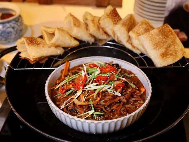 這個特製燒餅,配上炒豆干絲,一看到就很想下手,但深怕佔胃,只好放棄。