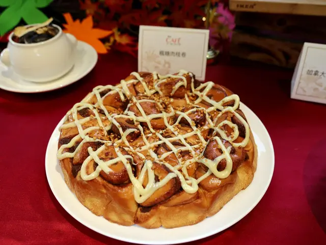 近年肉桂捲很受到矚目。出爐後的肉桂捲擠上主廚特製的楓糖奶油乳酪,麵皮和肉桂內餡層層交錯。入口麵皮柔軟Q彈,搭配肉桂溫潤厚實的獨特香氣,佐以另一種風情的楓糖奶油乳酪互相襯托,讓口感更具層次,也是這次美食嘉年華的必嘗甜點!