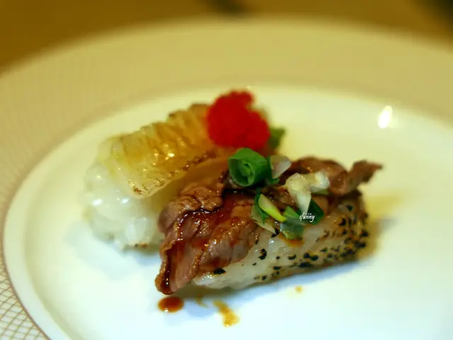 炙燒握壽司,一次每人只能拿兩個,和牛及比目魚鰭邊肉表現極佳。