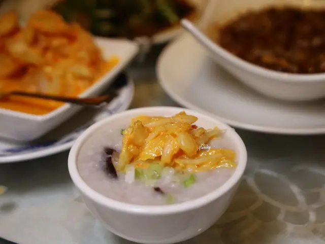 入座後先上了三盤開胃小菜,不包含在正常道數之中,有點小小驚喜。小黃瓜的輕脆、烤麩的微甜,以及黃金泡菜的酸甜,都跟芋頭粥好搭,簡直讓大家胃口大開啊!