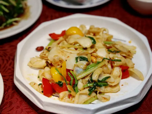 採用內地火紅的老干媽辣醬,加入甜椒、珠蔥、花生等拌炒花枝,辣味刺激味蕾好開胃。