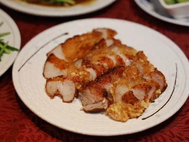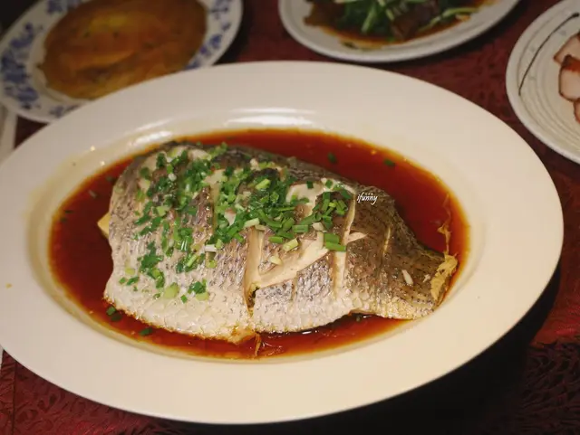 厚實的鱸魚,以熱油淋在脆綠的珠蔥上,帶來清雅的香氣。細緻的魚肉襯在豆腐之上,清爽的醬汁令魚肉及豆腐都充滿了鮮味。