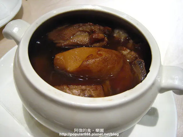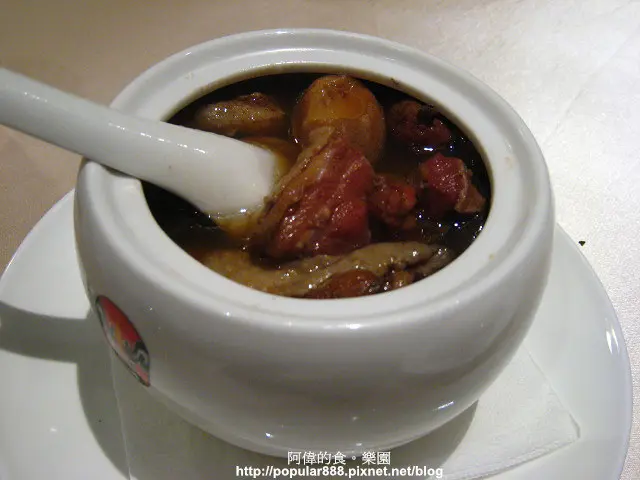 有豬肉、栗子、紅棗、芋頭等等,湯頭溫潤有相當的厚度卻又不濁
