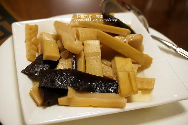 在等待時先嘗嘗桌上小菜,筍干木耳,醬汁入味、口感清脆。