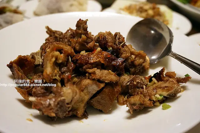 椒鹽鴨架的鴨肉雖然不多,但因為用了椒鹽炒過,肉骨特別的香,卻不會鹹,口感相當好!