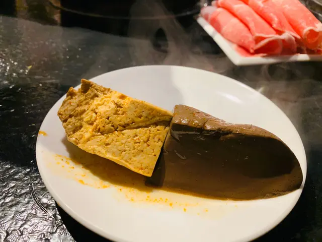 豆腐和鴨血切的大塊,如果凍般的鴨血滑嫩,毫無氣孔,但咬下去的每一口品味到麻辣湯香氣 ; 豆腐不是我對麻辣鍋期待出現的板豆腐