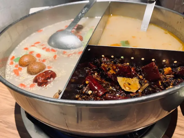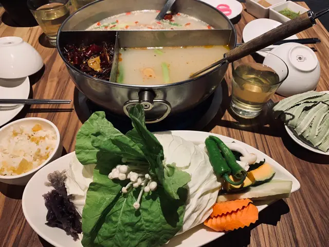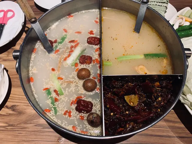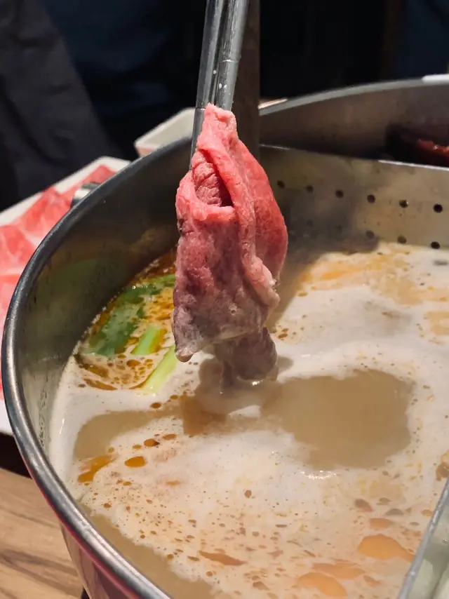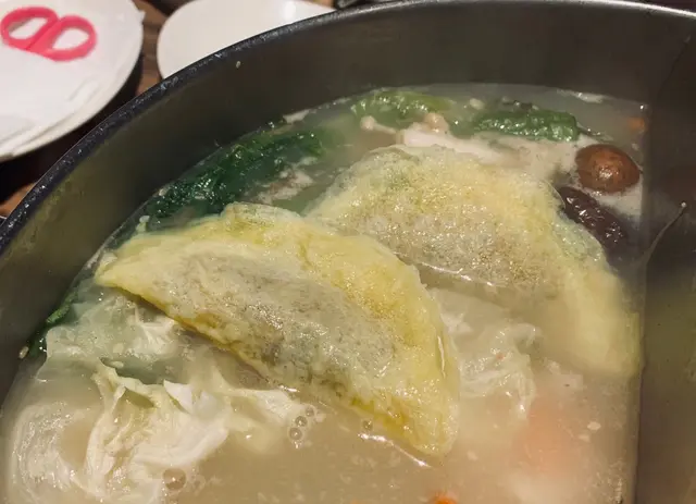 多年前用餐的22:02,我都差點忘了它是採用特殊鍋型,除了對切為紅白兩鍋,白湯是用牛骨高湯熬煮,放入紅棗、枸杞、黨蔘,桂圓等多數中藥材,還能看到大量白芝麻增添香氣
