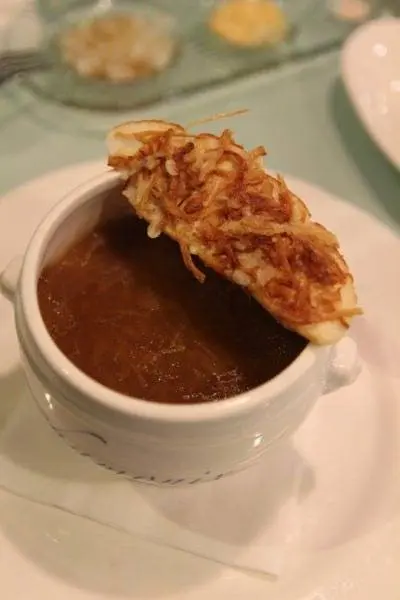 洋蔥湯相較於前一款雞肉清湯更為濃郁厚重