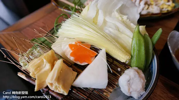 炸年糕、馬之瑞拉起司、豆皮、鱈魚豆腐、丸子、秋葵、玉米筍、龍鬚菜、白菜,