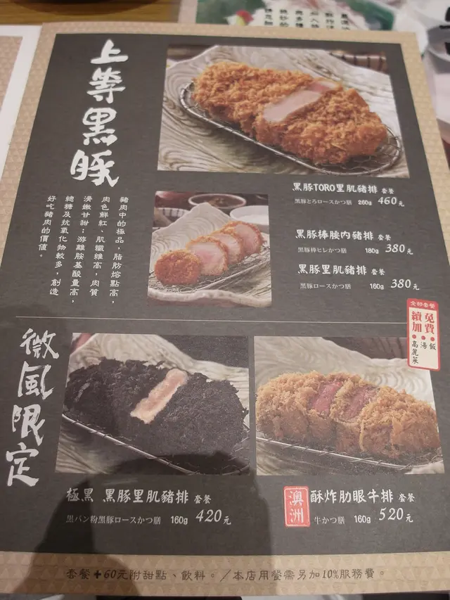 微風限定款有極黑.黑豚里肌豬排套餐酥炸肋眼牛排
