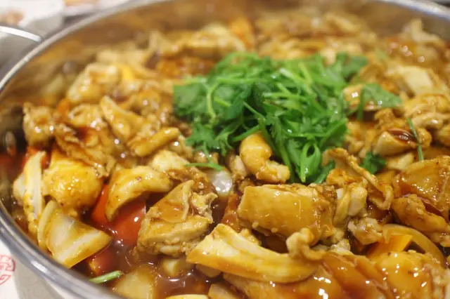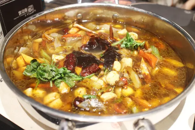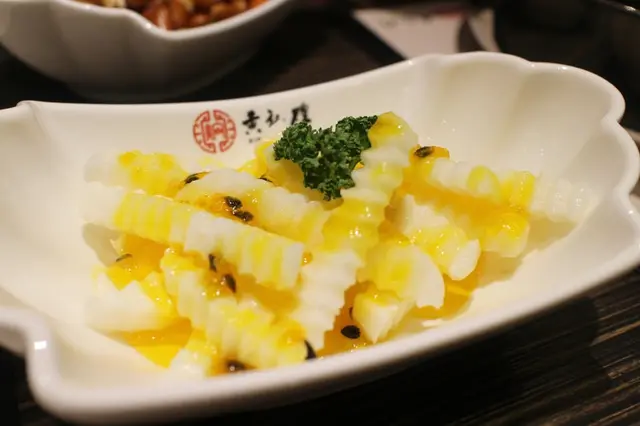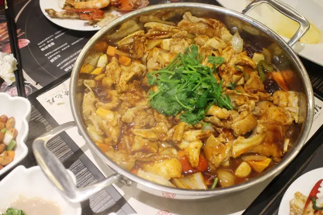 邊吃邊想到了日式壽喜燒,還有四川名菜水煮魚料理方式也很相近,看到官方記載提到〈黃記煌三汁燜鍋〉創辦人黃耕的曾曾祖父黃鈺玖則是清朝時御膳房總管。一回黃鈺玖隨同治皇帝南巡,嘗到了〈香辣汁魚〉,皇帝盛讚這道菜美味。黃鈺玖於是向民間要來了這菜的食譜祕方,用砂鍋燜製活魚,並照著食譜熬醬汁淋在魚上燜煮,從此成了宮廷菜。黃耕自己是個廚師,父親黃振歐又是中國營養學家,所以他照著家傳的食譜結合營養概念,研發改良後創了〈黃記煌三汁燜鍋〉