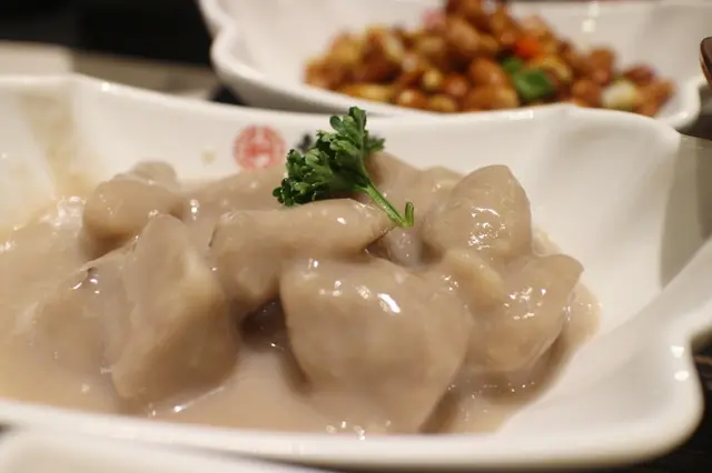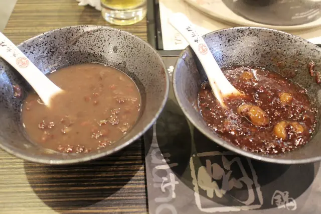 飯後甜點可以選擇紅豆湯或紫米湯,紫米湯還有添桂圓,在冬天時能喝碗甜湯非常幸福!