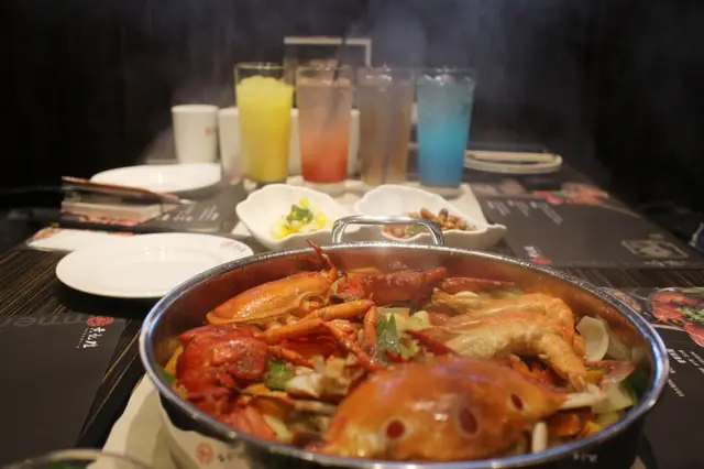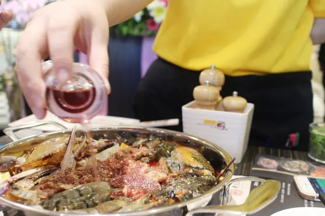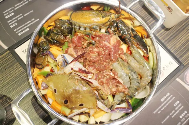 第三步:最後依照你所點的主餐不同,在上層放了牛羊雞豬肉或龍蝦、明蝦、石斑魚和貝類海鮮的主餐