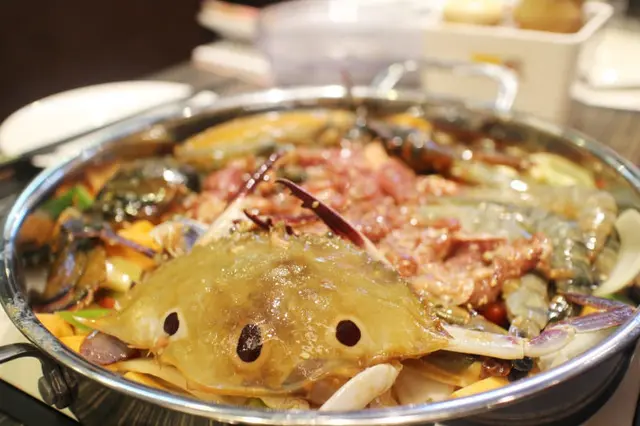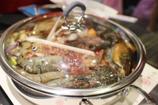 是鍋非鍋,是吃完黃記煌的心得。對於台灣火鍋遍地開花,若沒有獨具特色可能就要靠週邊服務來吸引人潮了!有別於坊間火鍋有鍋底、涮煮食材,而是燜鍋內完全不加水和湯,先放了用不同藥材和香料煉的底油,看起來像奶油外貌,舖了大蒜、紅薯、洋蔥、胡蘿蔔、西芹、紅椒、青椒、番茄、紅棗和枸杞等10種蔬食,最後依照你所點的主餐不同,在上層放了牛羊雞豬肉或龍蝦、明蝦、石斑魚和貝類海鮮的主餐,先加蓋燜至半熟後,最後一步驟在上層淋了特製的濃縮黏稠醬汁,靜置五分鐘左右就可以開吃!然後以上步驟你子需要用眼睛看,全程會由服務生代勞,非常輕鬆!