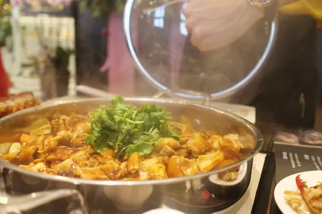 服務生最後點綴上黑胡椒等香料,就可以開始燜煮囉!