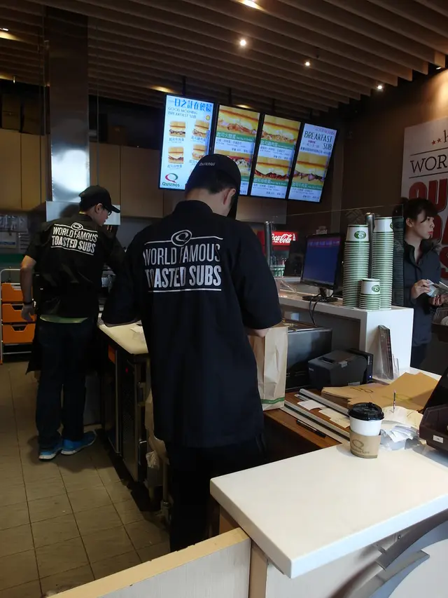 Quiznos Sub 店內空間不大,主要是以外帶為主