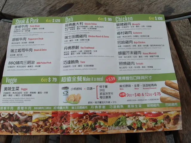 除了早餐以外,11點過後也有6"、9"、12"的三明治或其他副餐選擇