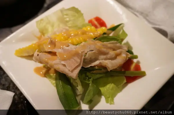淋上了芝麻醬頗有和風味 看到了粉紅色的牛肉了嗎?!