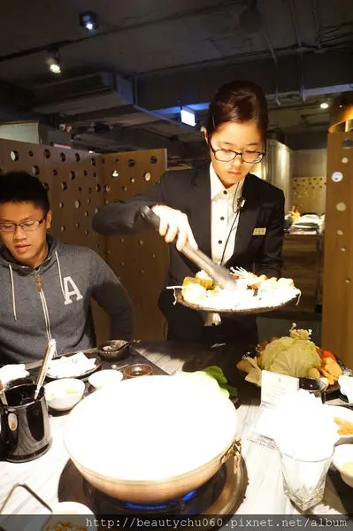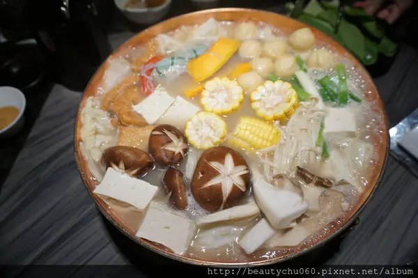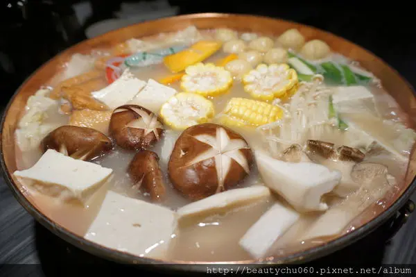 乳白色的湯底 看起來好好喝~在這裡吃火鍋很享受 因為全程都有專人服務