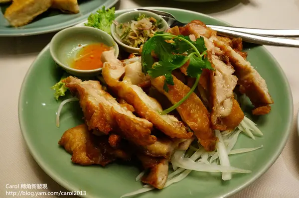 雞皮炸至金黃酥脆,雞肉鮮嫩多汁,