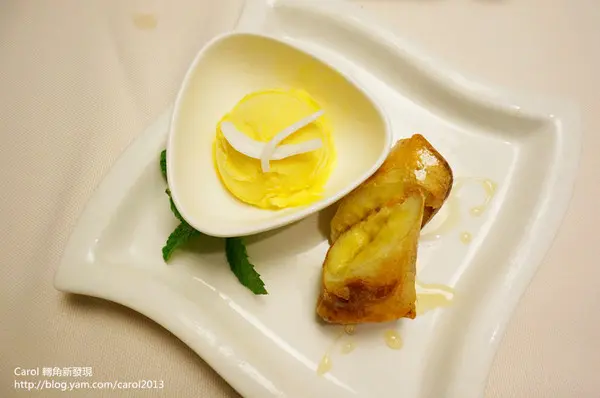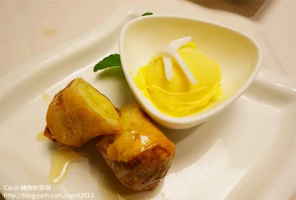 香蕉中間夾起士外層裹上春捲皮油炸,
