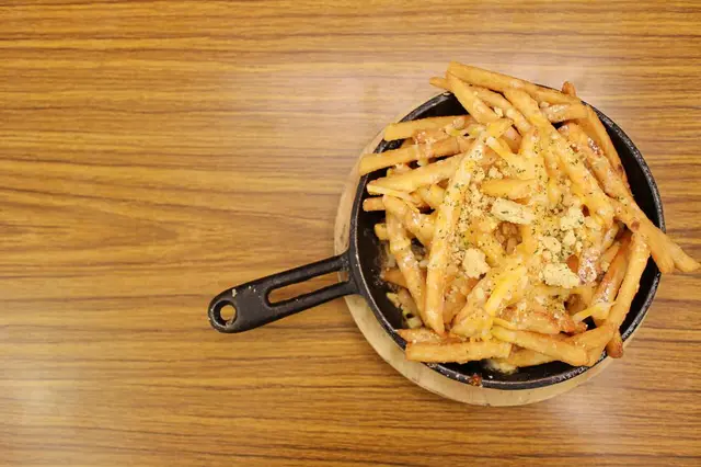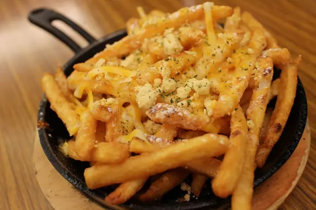 起司和煉乳雙重邪惡誰都抵擋不住啊!沒想到薯條不沾鹹改沾甜也好好吃,是本日讓全場驚豔的一道!