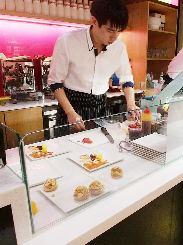 店面前側是甜點櫃、冰淇淋櫃和結帳櫃檯