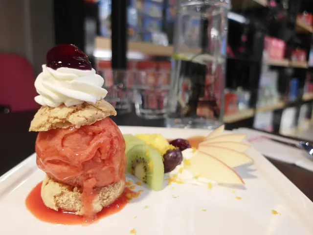 內用除了冰淇淋和法式蛋糕以外,也有現做甜點比利時鬆餅和波菲提,還有果汁咖啡花茶類